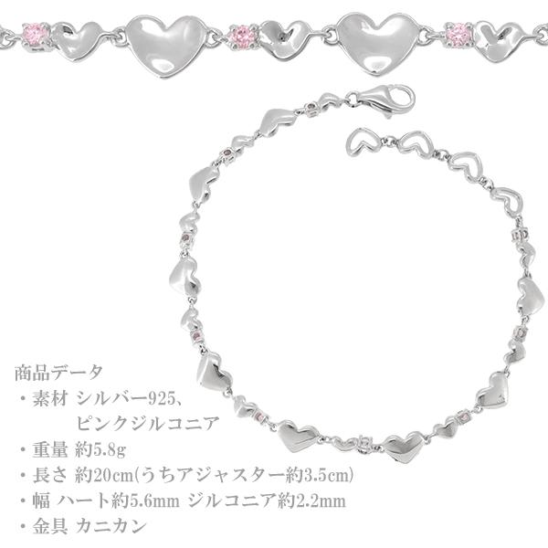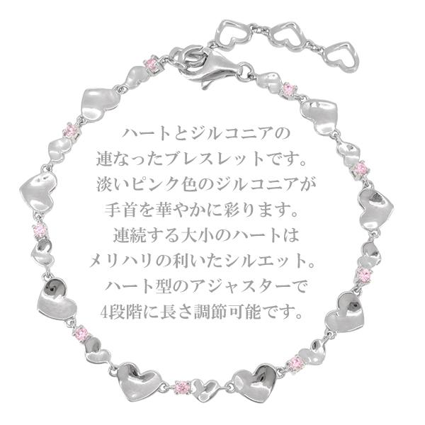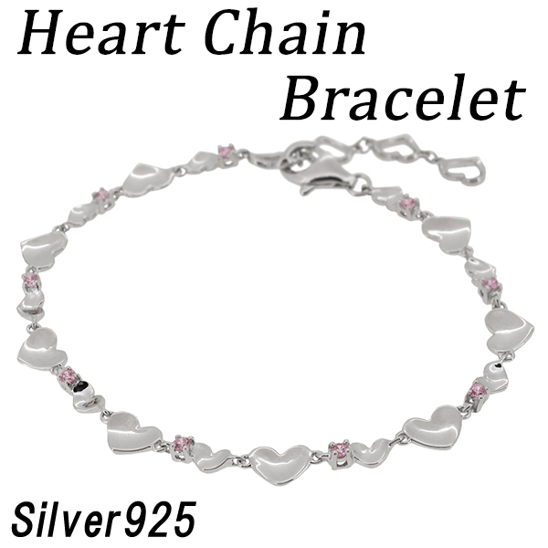 ハート ピンク ジルコニア チェーン シルバーブレスレット
