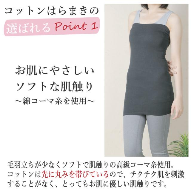 綿の中でも特にやわらかで優しい肌触りのコーマ糸を使用した【コットン腹巻ロング丈】