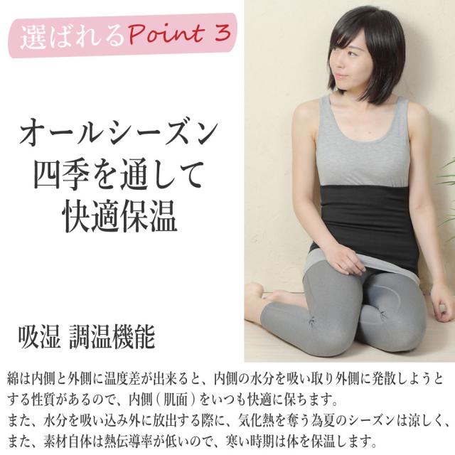 綿の持つほんのり自然な暖かさで優しくお腹を適温に保ってくれます。