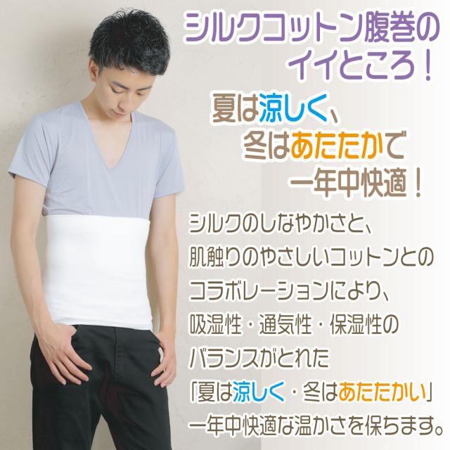 腹巻き メンズ シルク in コットン ロング はらまき 日本製 腹巻きシルク 腹巻きロング 薄手 夏 秋 冬 オールシーズン用 暖かい おしゃれ あったか 保温 温活 綿 絹