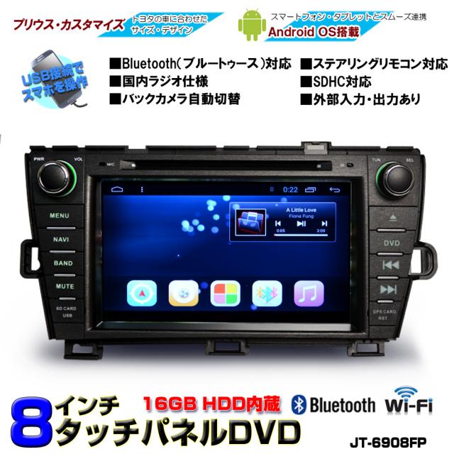プリウス 一年間保証 8インチ Android9.0 DVD内蔵★ラジオ SD Bluetooth内蔵 16G HDD WiFi アンドロイド スマホ iPhone無線接続 prius