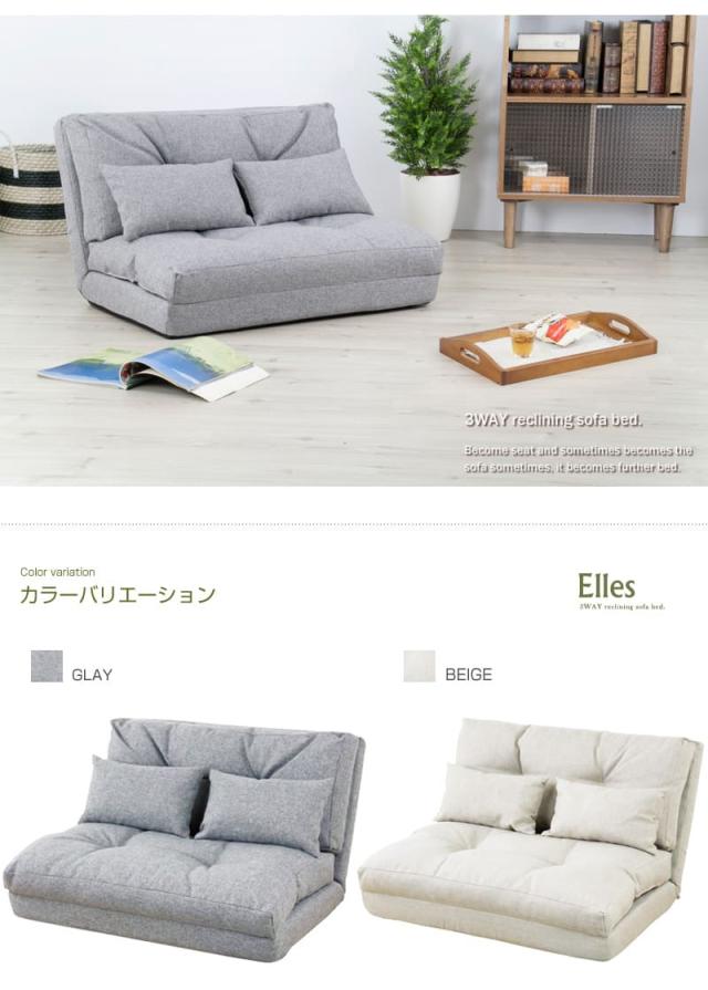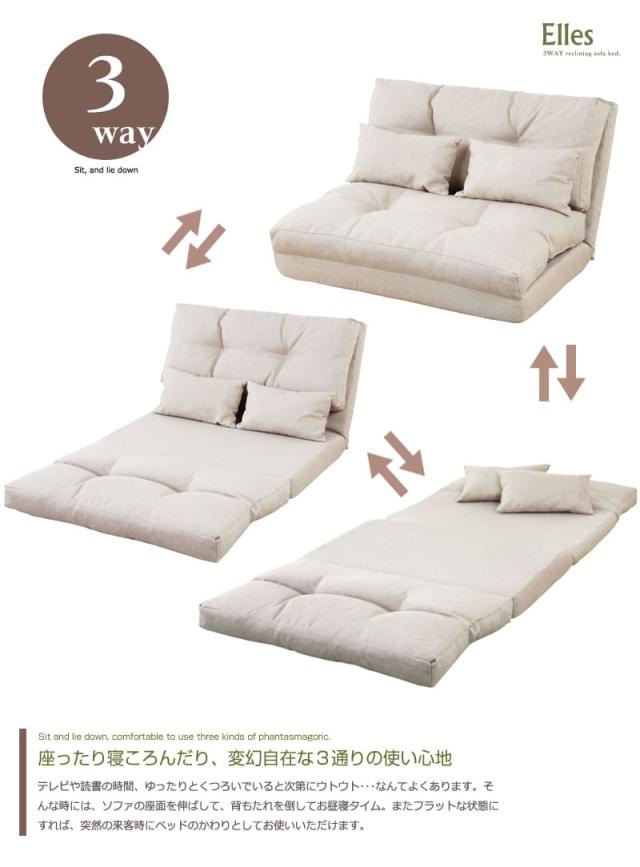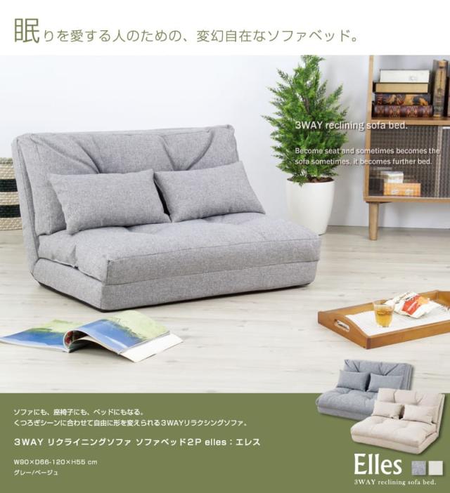 ソファ ベッド 2人掛け ゆったり3WAYソファベッド エレス クッション付/リクライニング elles リビング くつろぎ 新生活 一人暮らし おすすめ