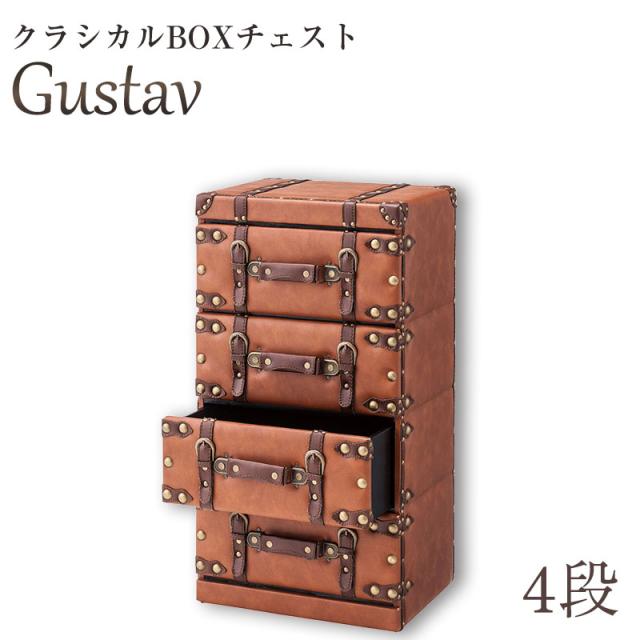 クラシカルBOXチェスト Gustav グスタフ 4段タイプ 合皮 宝箱 クラシック レトロ 革トランクチェスト agesugi_sis
