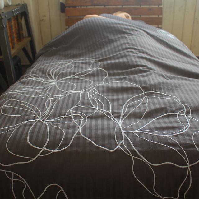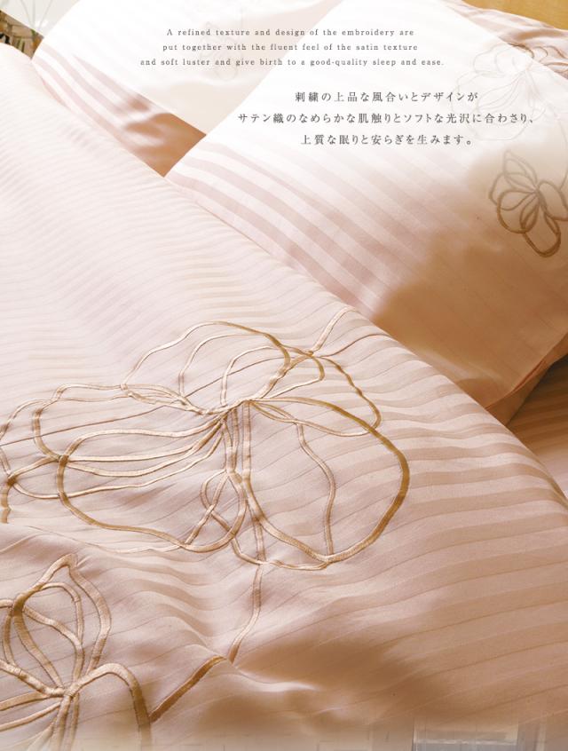 ■刺繍が美しい、ラビアナホテルデザインのサテンストライプカバーシリーズ。ホテル仕様の上質な眠りとくつろぎをお届けします。■刺繍の上品な風合いとデザインが、サテン織りのなめらかな肌ざわりやソフトな光沢と調和して、上質な眠りと安らぎをもたらします。【サイズ】掛け布団カバー シングル:150×210cm【素材】綿100%【仕様】6か所スナップボタン付き、全開ファスナー、2ヶ所スリット