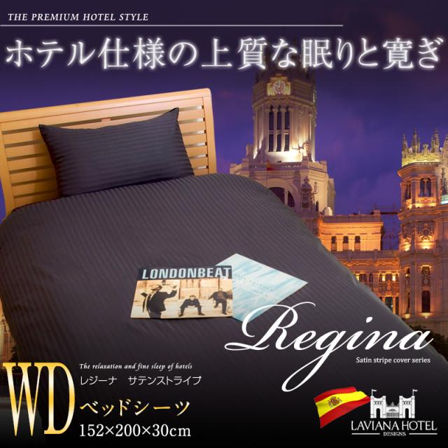 【ボックスシーツ/ワイドダブル】ラビアナホテルデザイン サテンストライプ カバーリング Regina:レジーナ