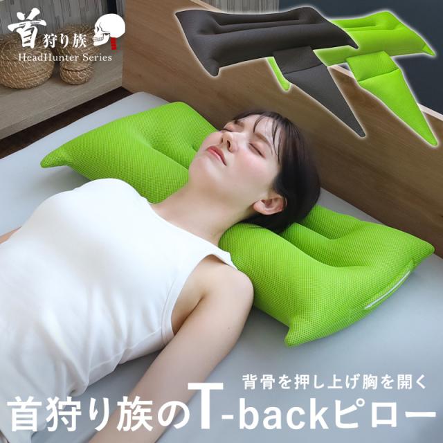 ■ストレートネックの救世主「首狩り族のネックピロー」に新たなラインアップ!■巻き肩、猫背の気になる方へ。首と背中を支え背骨を押し上げ胸を開く新構造Tバックピローが登場。【サイズ】枕部分:約67×24cm、バックピロー部分:長さ約39cm 【素材】カバー部分:ポリエステル100%ダブルラッセル、中材:首・背中部分/ PP・ポリエチレンパイプ、中材:頭部分/PP・ポリエチレンパイプ【カラー】グリーン、ブラウン 【お洗濯】中性洗剤で手洗い推奨。洗濯後形を整えてよく陰干ししてください