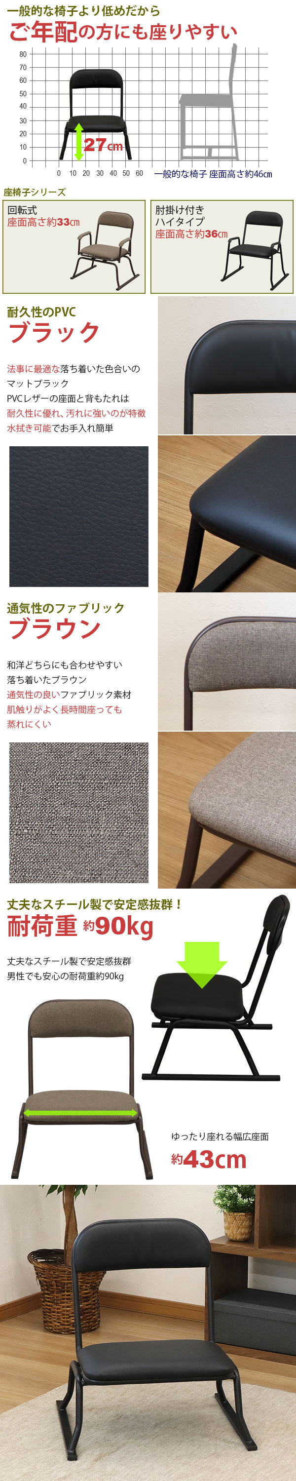 座椅子 高座椅子 座敷椅子 楽座椅子(単品) 積み重ね可能 座敷 椅子 畳み椅子 仏壇椅子 座いす 座面 低い 座イス 幅53cm 奥行52cm 高さ58cm 座面高さ27cm 集会所 お寺(法要 法事 本堂 和室 和式) シンプル 高齢者 イス スタッキングチェア ブラック ブラウン 完成品