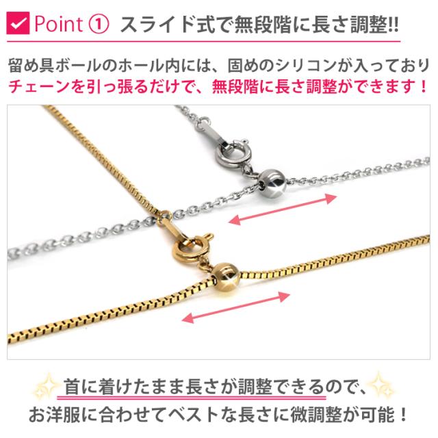 金属アレルギー対応 ネックレスチェーン アジャスター スライド式 無段階長さ調整 スライダー 小豆チェーン ベネチアンチェーン