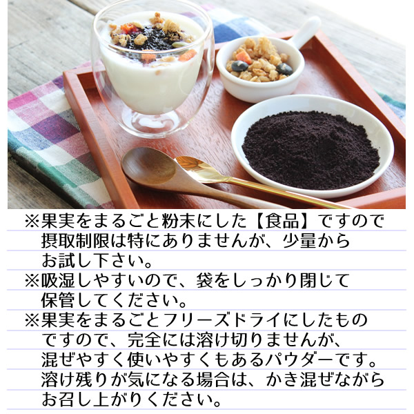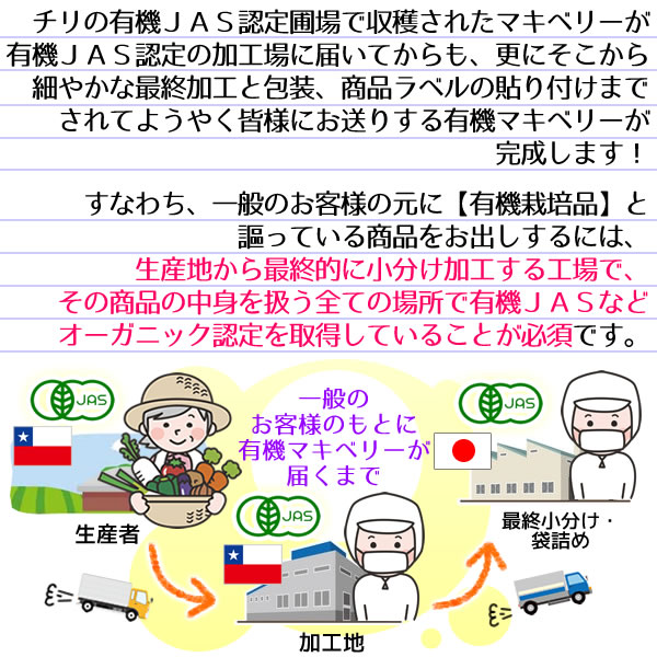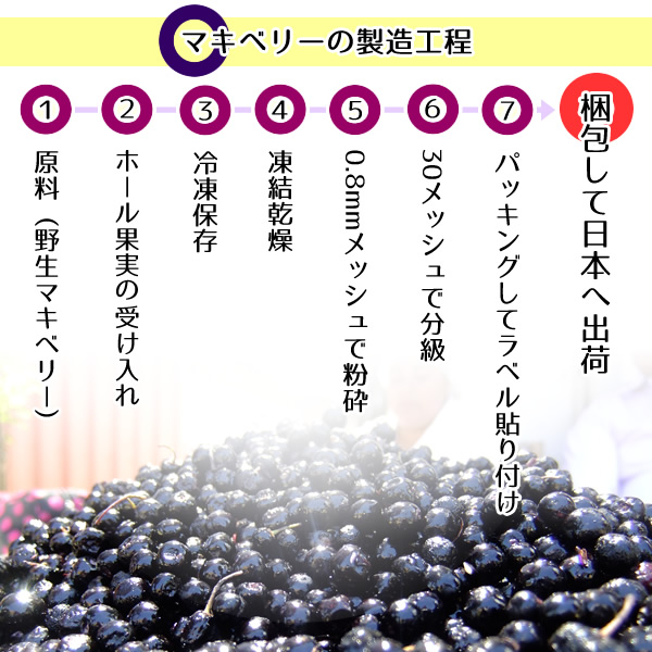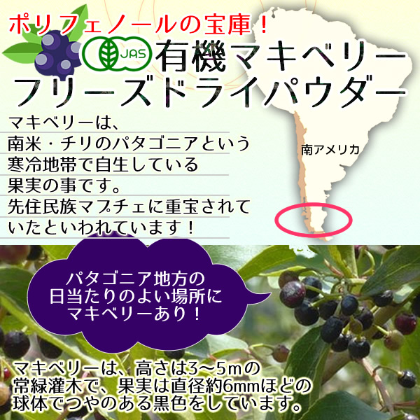 原材料名:マキベリー果実パウダー(有機)【原産国:チリ 最終包装地:日本】