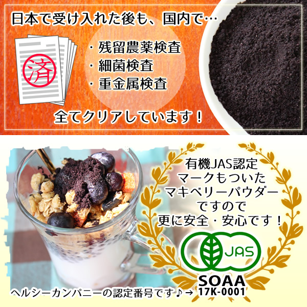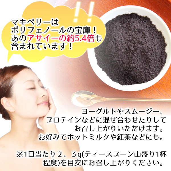 原材料名 マキベリー果実パウダー(有機)【原産国:チリ 最終包装地:日本】 |