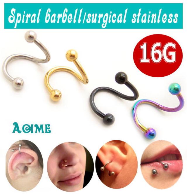 16G スパイラルバーベル ボディピアス サージカルステンレス ボディーピアス 軟骨 ピアス 黒 バーベル bp365-