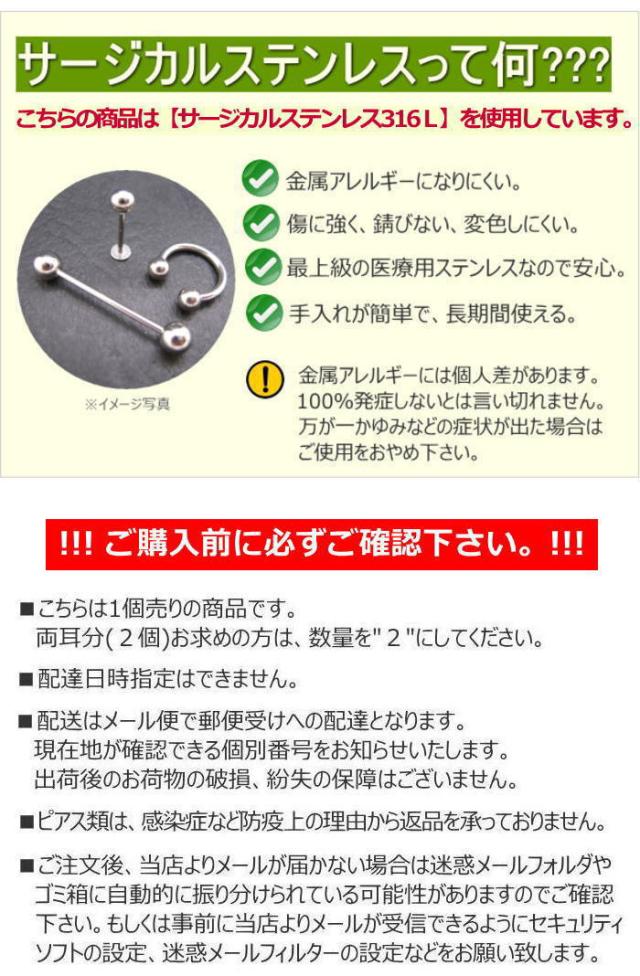■カラーはサージカルステンレスにカラーコーティングを施しています。強度の金属アレルギーの方にはシルバーカラーをお勧めします。