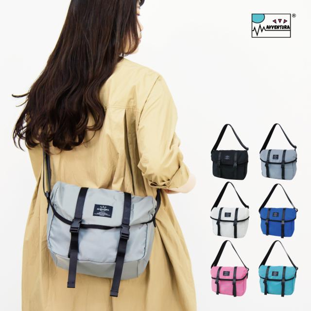 送料無料 アヴェンチュラ ショルダーバッグ 斜めがけ 撥水 ナイロン 軽量 小さめ a5 ロゴ ポケット 多収納 黒 レディース メンズ 男女兼用 大人 女性 男性 大学生 女子 男子 高校生 中学生 アウトドア サブバッグ フェス 通勤 通学 かわいい 人気 ブランド