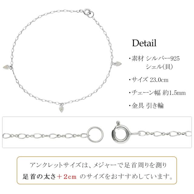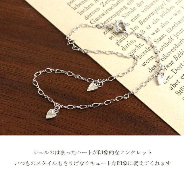 シェル ハート チャーム アンクレット シルバー 925 大人かわいい さりげない きれい 足首 足 レディースアンクレット アンク レディース 女性 彼女