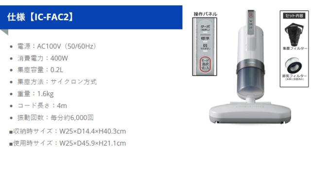 布団クリーナー ふとん掃除機 アイリスオーヤマ 布団 掃除機 ダニ 布団用掃除機 ダニ掃除機 花粉対策 花粉 ふとんクリーナー ハウスダスト ダニ退治 コンパクト ハンディ 布団 ベッド 寝具 梅雨 IC-FAC2