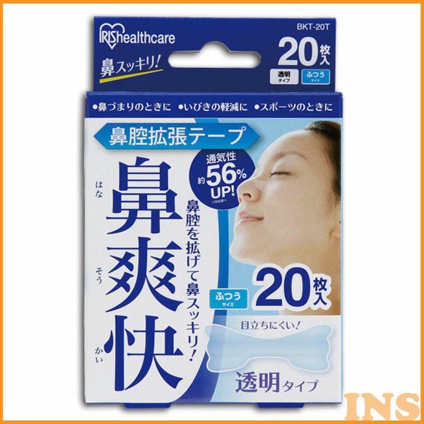 鼻腔拡張テープ 20枚 アイリスオーヤマ * BKT-20T ふつうサイズ 透明 個包装 鼻腔テープ 鼻孔拡張テープ 鼻呼吸 鼻づまり 鼻詰まり スポーツ いびき 対策 鼻孔テープ 鼻腔拡張 鼻孔拡張 広げる 通気性向上 睡眠 呼吸しやすい 鼻スッキリ クリア