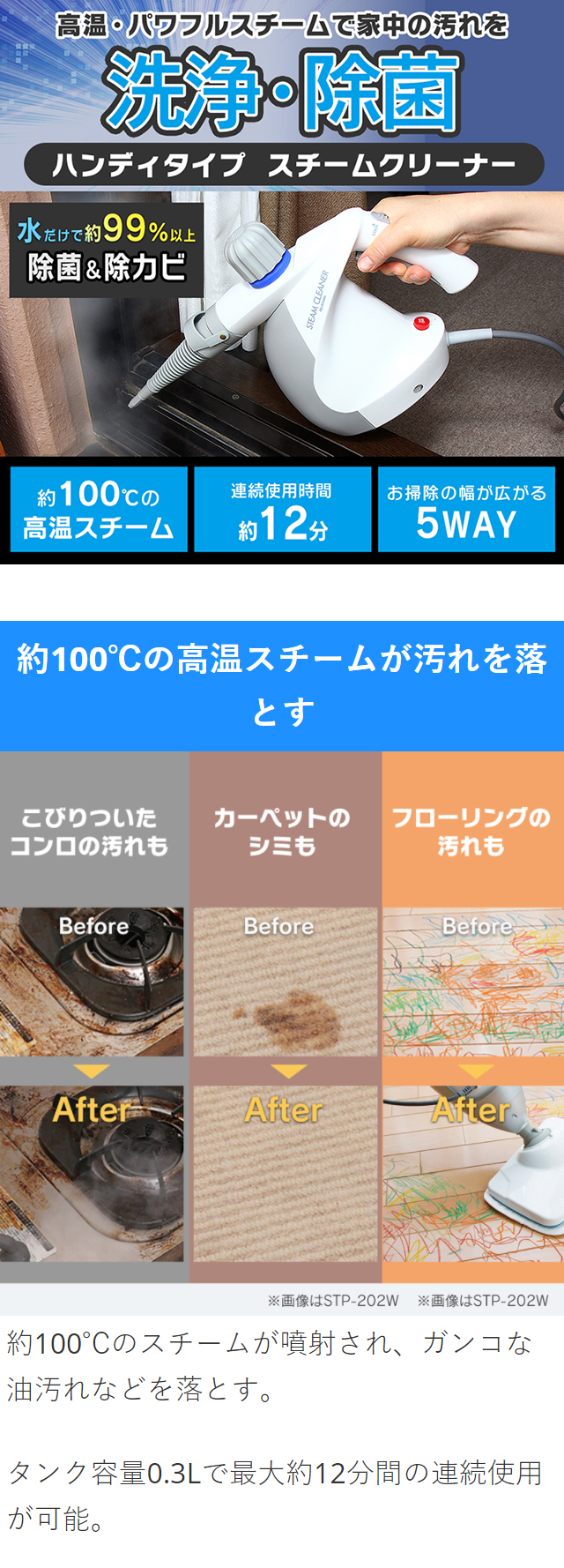 スチームクリーナー ハンディ アイリスオーヤマ STM-303 スチーム クリーナー ハンディタイプ 掃除 清掃 大掃除 掃除グッズ 汚れ 除菌 床 窓 玄関 天井 コンロ キッチン フィルター 油汚れ しみ抜き 洗浄 ホワイト