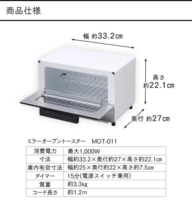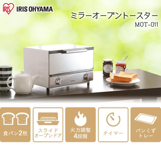 トースター ミラーオーブントースター 2枚焼き タイマー付き ミラー 横型 一人暮らし 2枚 本体 アイリスオーヤマ MOT-011 送料無料