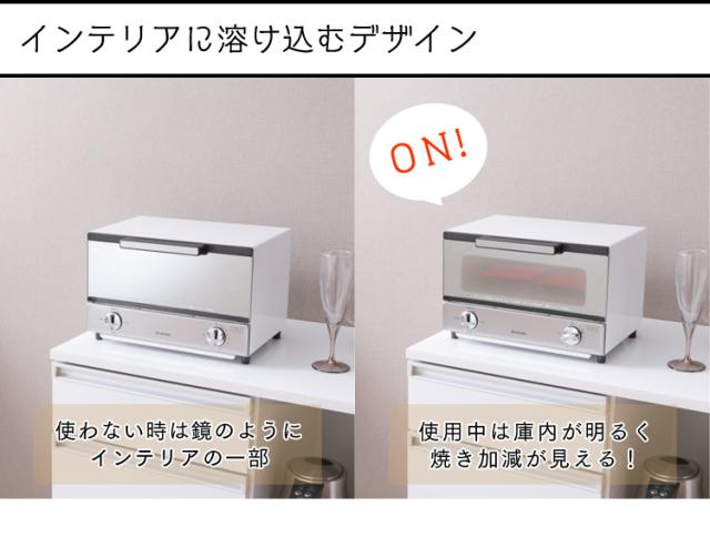 - ミラー仕様なので見た目とてもいいです ただ中が見えなくてトースター焼いてる途中焼き具合がわかりません そこで星1つ減らしました