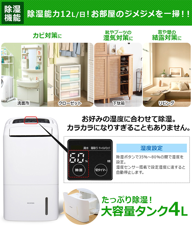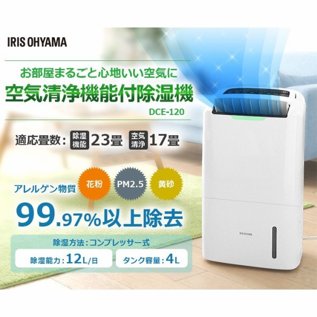 除湿機 空気清浄機 4L コンプレッサー DCE-120 アイリスオーヤマ 空気清浄機能付除湿機 除湿器 空気清浄器 衣類乾燥除湿機 空気清浄 部屋干し 静音 静か 節電 室内 空気 乾燥 除湿 清浄 カビ 湿気 結露 大容量 ハンドル 人気 安い おすすめ 送料無料