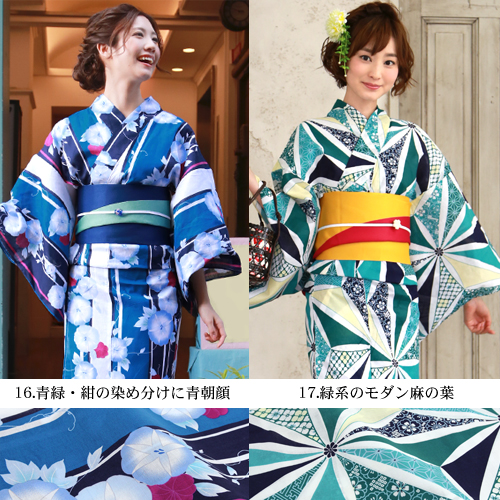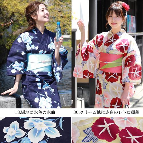 浴衣 セット レディース レトロ 「なでしこ」ときめき恋浴衣3点セット 選べる19柄 ゆかた 大人 朝顔 紫陽花 麻の葉 雪輪 水仙 梅 桜 菊 紺 緑 白 黒 赤 黄色 青