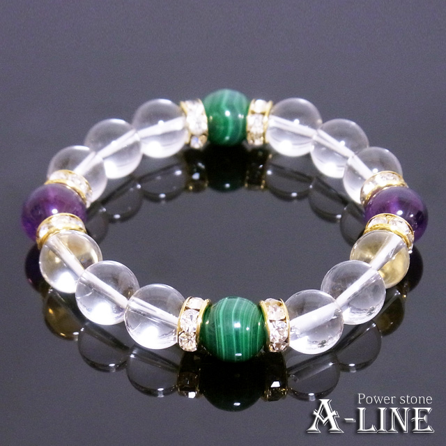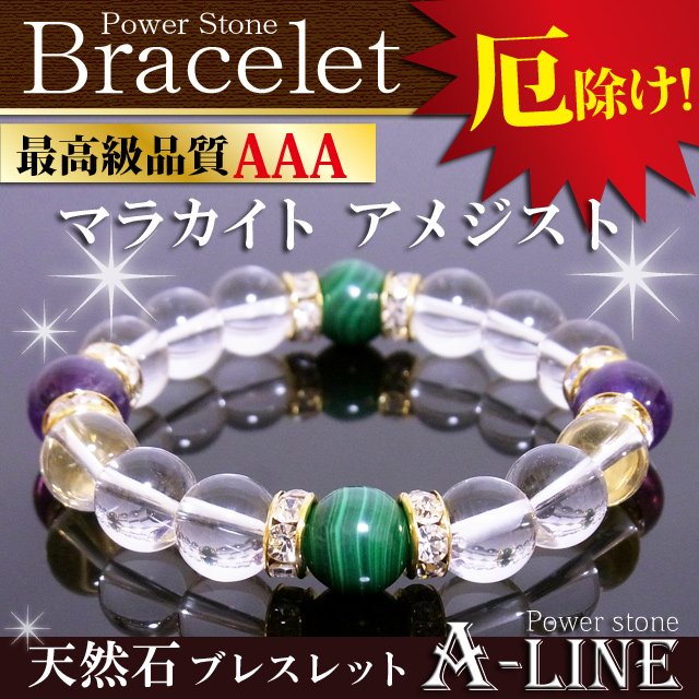 パワーストーン ブレスレット AAAマラカイト&アメジスト&水晶10mm 厄除け 魔除けPW-3133