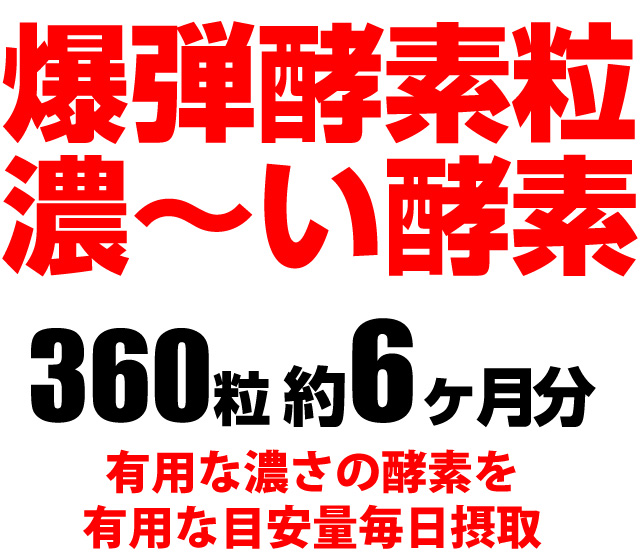 【送料無料】爆弾酵素粒濃〜い酵素360粒(約6か月分)有用な濃さの酵素を有用な目安量毎日摂取★本格派酵素が体の隅々に♪爽快スリム毎日! ギャバ 黒大豆ポリフェノール ローヤルゼリー ヒアルロン酸 セラミド エラスチン アスタキサンチン 植物 発酵 果実 野菜 ダイエット