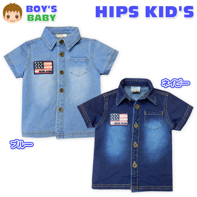 | 特長 | ・HIPS KID'S(ヒップスキッズ)・デニム風ニットシャツ・軽い ・カッコいい ・柔らかい・胸ポケット1P ・星条旗ワッペン・子供用 ・男の子 |