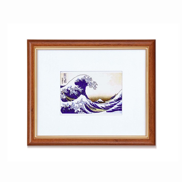 葛飾北斎の浮世絵「富嶽三十六景神奈川沖浪裏」を高級感漂う木目調の額にセットしました。