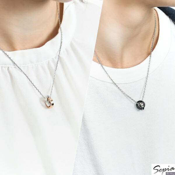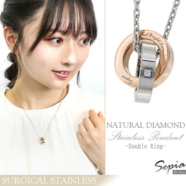 Sepia 2連リング 天然ダイヤ ステンレス ペアネックレス ペアアクセサリー お揃い カップル おしゃれ サージカルステンレス 医療用ステンレス