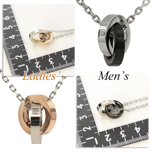 ★送料無料★【Sepia】2連リング 天然ダイヤ ステンレス ペアネックレス