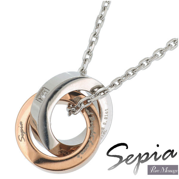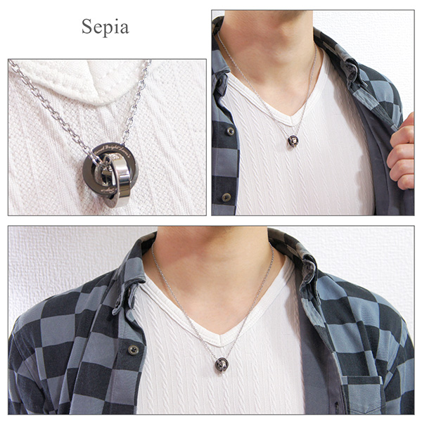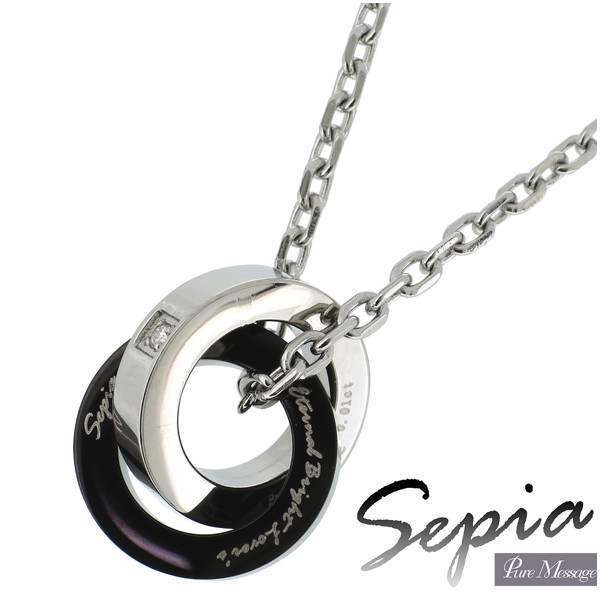 【Sepia】2連リング 天然ダイヤ ステンレス ネックレス(ブラック)