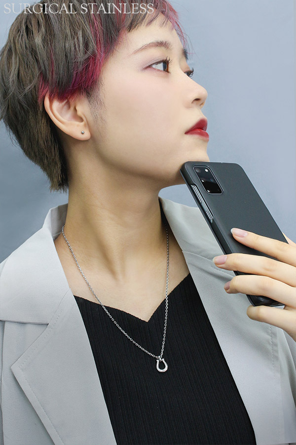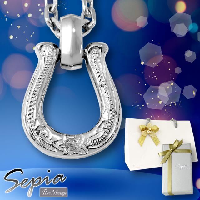 Sepia 馬蹄 シンプル ハワイアン ダイヤモンド サージカルステンレス ネックレス メンズ レディース 金属アレルギーフリー メンズネックレス