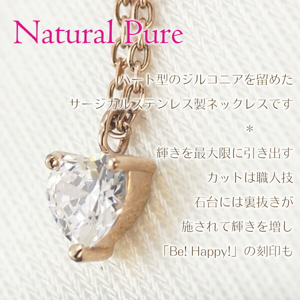 【Natural Pure】ハート カットジルコニア サージカルステンレス ネックレス レディース