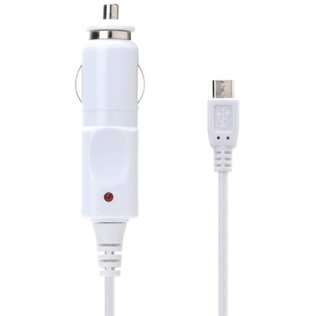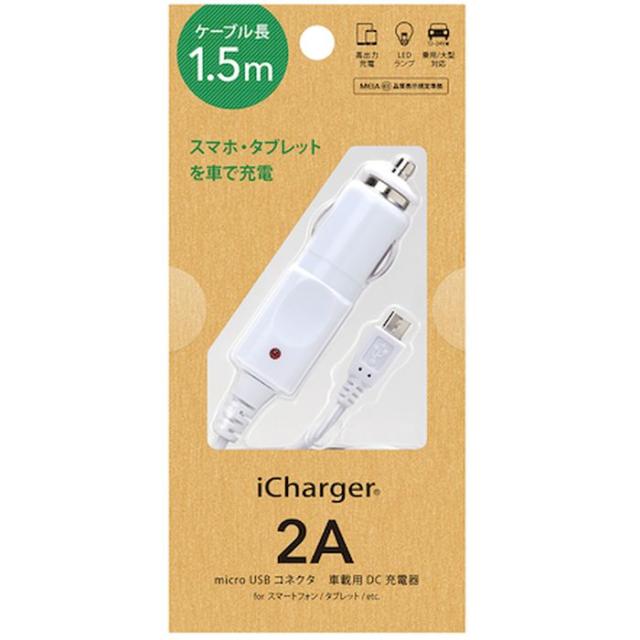 ■microUSBコネクタ搭載 車載用DC充電器 出力 2A ケーブル長1.5m ホワイト:ハイパワー2Aでスマホ・タブレットを充電/乗用/大型車どちらでも使えるDC12-24V/通電をLEDランプでお知らせ