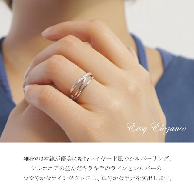 細身の3本線が優美に絡むレイヤード風のシルバーリング。