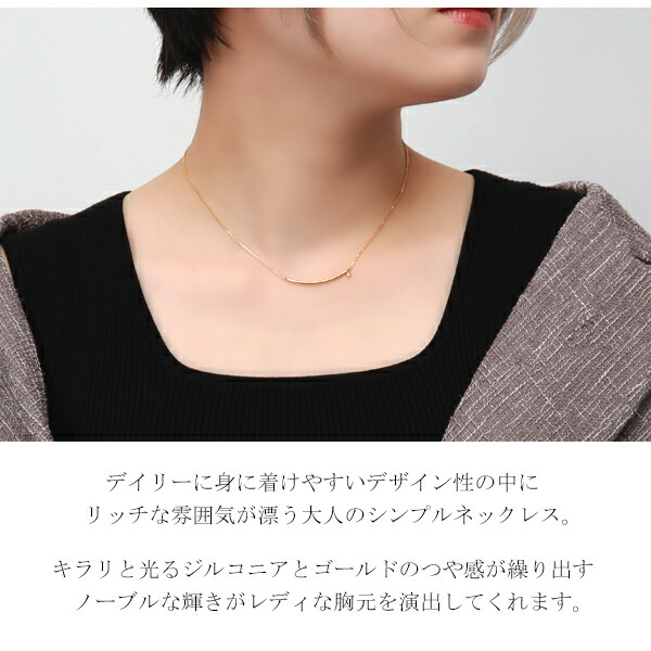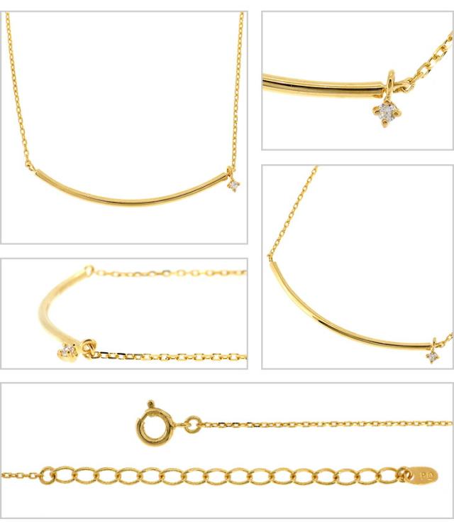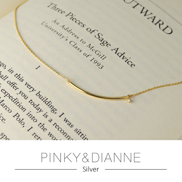 ピンキー&ダイアン ゴールドカラー バーネックレス シルバー925 ネックレス ライン カーブ 曲線 U字 星 スター 一粒石 金色 シンプル 上品 綺麗