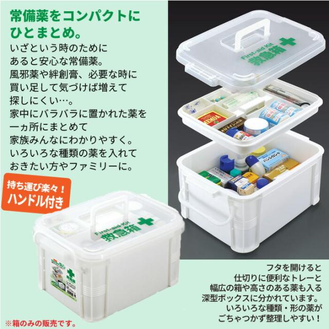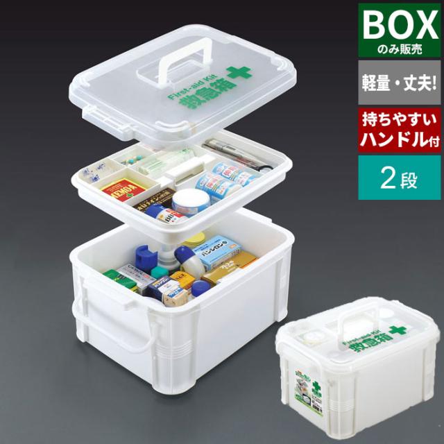 救急箱 薬箱 ※箱のみ 薬入れ 2段 救急ボックス ケガ 応急手当 包帯 絆創膏 ばんそうこう 常備薬 薬 くすり 収納 大容量 防災箱 プラスチック コンパクト 持ち運び 軽量 部活 防災 看護 福祉 怪我 衛生 工具 収納 ケース