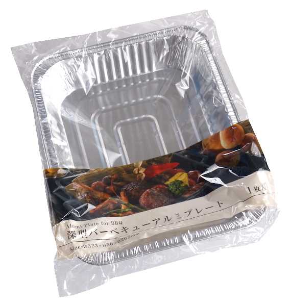 深型バーベキューアルミプレート 32.3×26.5×5.6cm (100円ショップ 100円均一 100均一 100均)