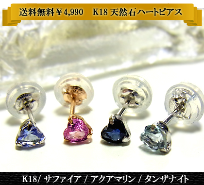 K18 0.3ctブルーサファイア/ピンクサファイア/アクアマリン/タンザナイトピアス/スタッド/ハートカット 年度末 sale/