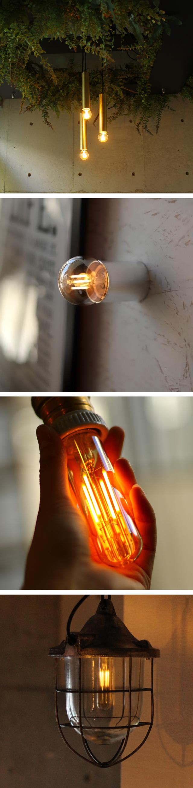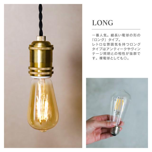 アンティークやヴィンテージランプとも相性のいい、レトロな風合いのLED電球です。