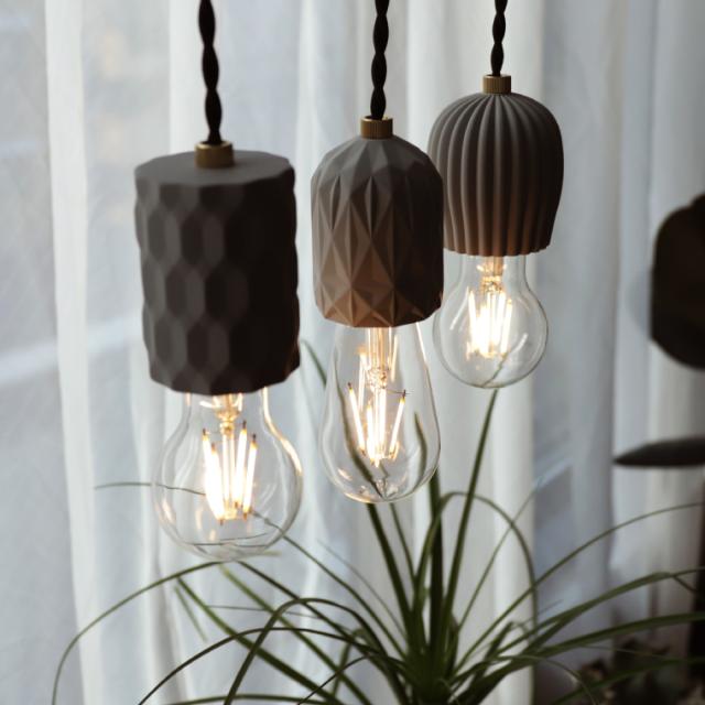 裸電球のままペンダントライトに吊るすだけで、カフェやバーのような洗練された空間に。