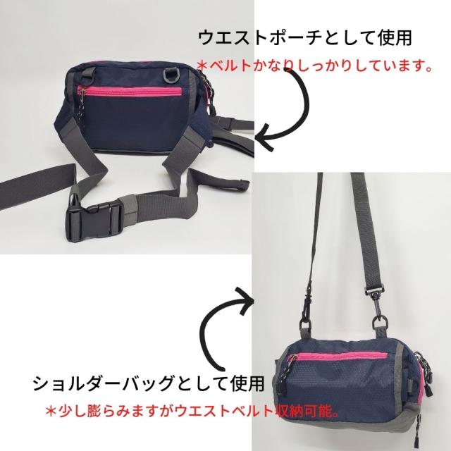 - ウエストバックとしてはポケットもたくさんあってとても満足です。肩掛けポーチの紐がついてなかったのがちょっと残念でした。それがあったらパーフェクトですね。