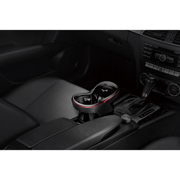 ドリンクホルダー 車 ツインカップホルダー クワトロ X カーボン調 メタリックレッド/カーメイトDZ413