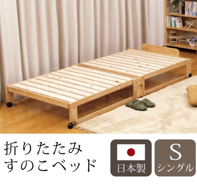 ベッド 中居木工 らくらく 折りたたみ式 桧 すのこベッド シングル 日本製 桧 ひのき ベッド すのこ ローベッド 木製(代引不可)【送料無