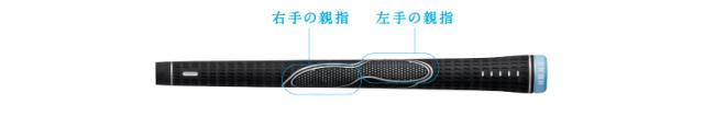 ガイドに親指を合わせて握るだけで、ラウンド中でも迷うことなく正しくグリップできる。