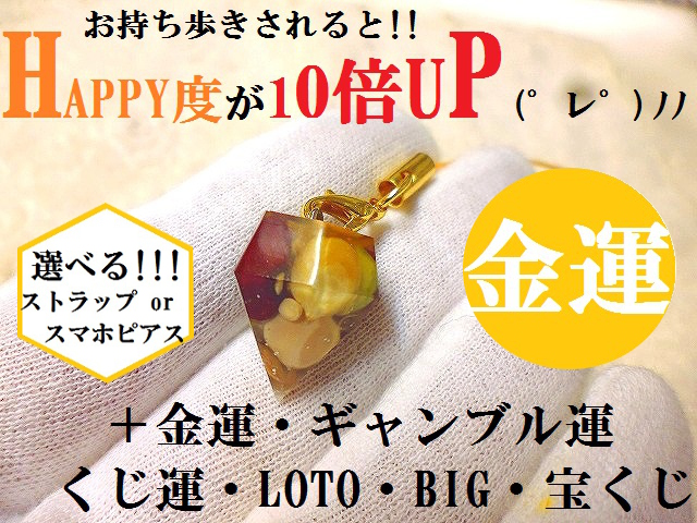 金運・クジ運・LOTO・BIG・ギャンブル運★富の種★ルチルクォーツ★ハッピーシード★ストラップ・スマホピアス★パワーストーン★護符