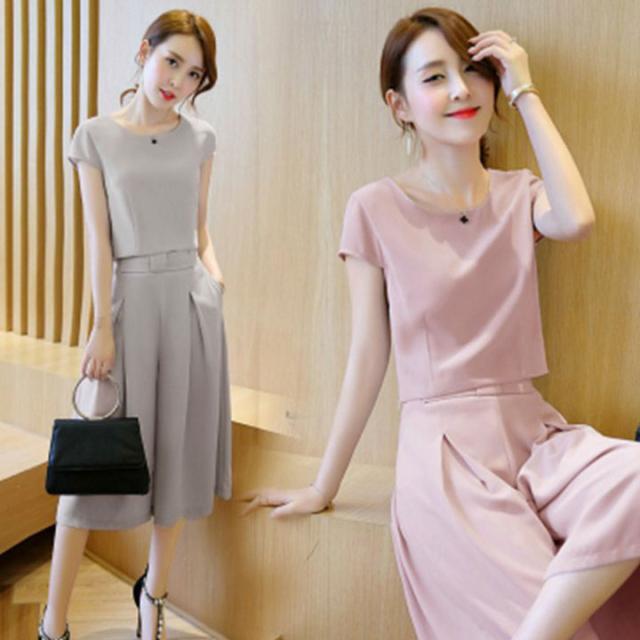 ワイドパンツ レディース セットアップ 上下 セット 2枚セット 半袖 ガウチョパンツ