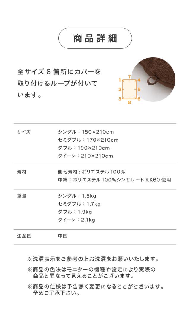 布団カバーとのズレを防ぐ8箇所ループ紐付き。