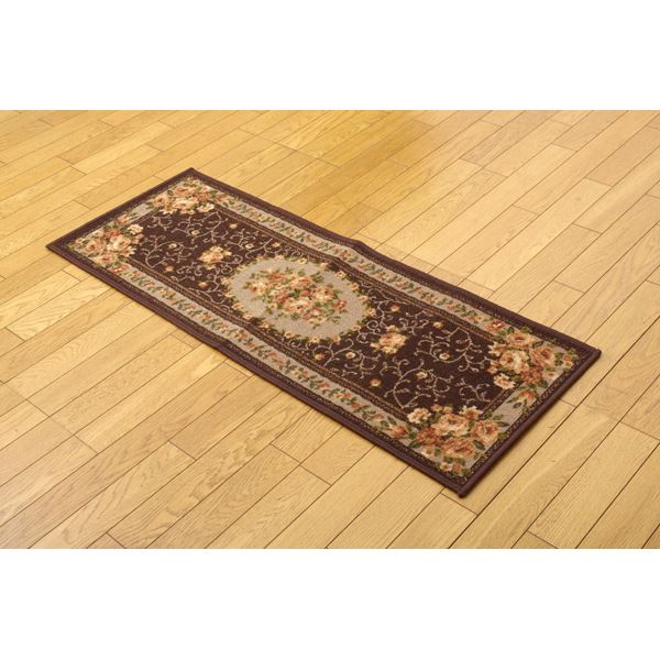 ナイロン 花柄 キッチンマット 『撥水キャンベル』 ブラウン 約44×120cm(代引不可)